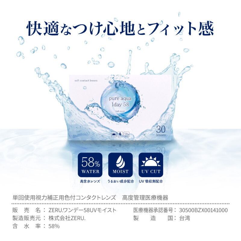 クリアコンタクト ピュアアクアワンデー UV Moist 58 by ZERU 1箱30枚 高含水 58% レンズ 1日使い捨て コンタクトレンズ UV加工 モイスト クリアレンズ モイスチャー pa1day58uvm