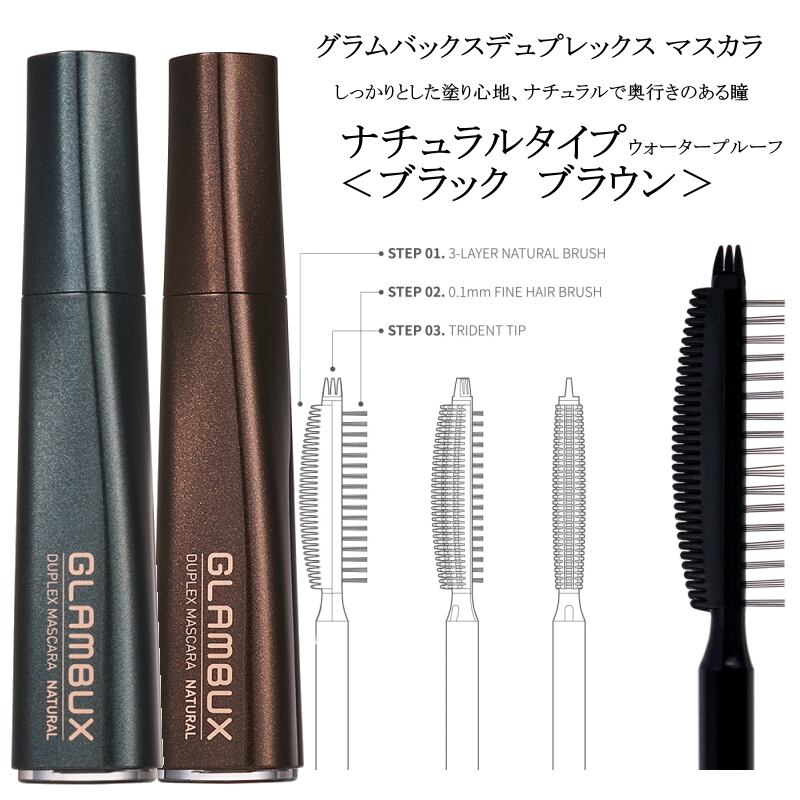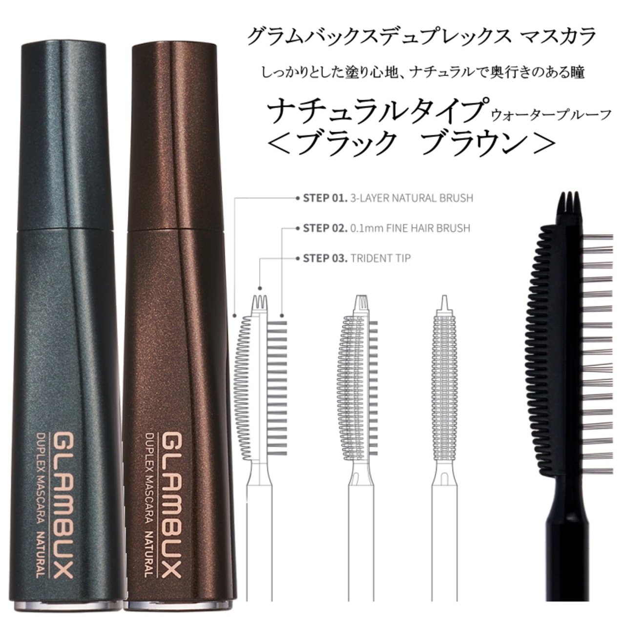 GLAMBUX グラムバックス デュプレックス マスカラ 仕上がり 5タイプ 二重ブラシ LAYER配列ブラシ ボリューム ロング マイクロ ナチュラルブラック ナチュラルブラウン 韓国 コスメ レイス