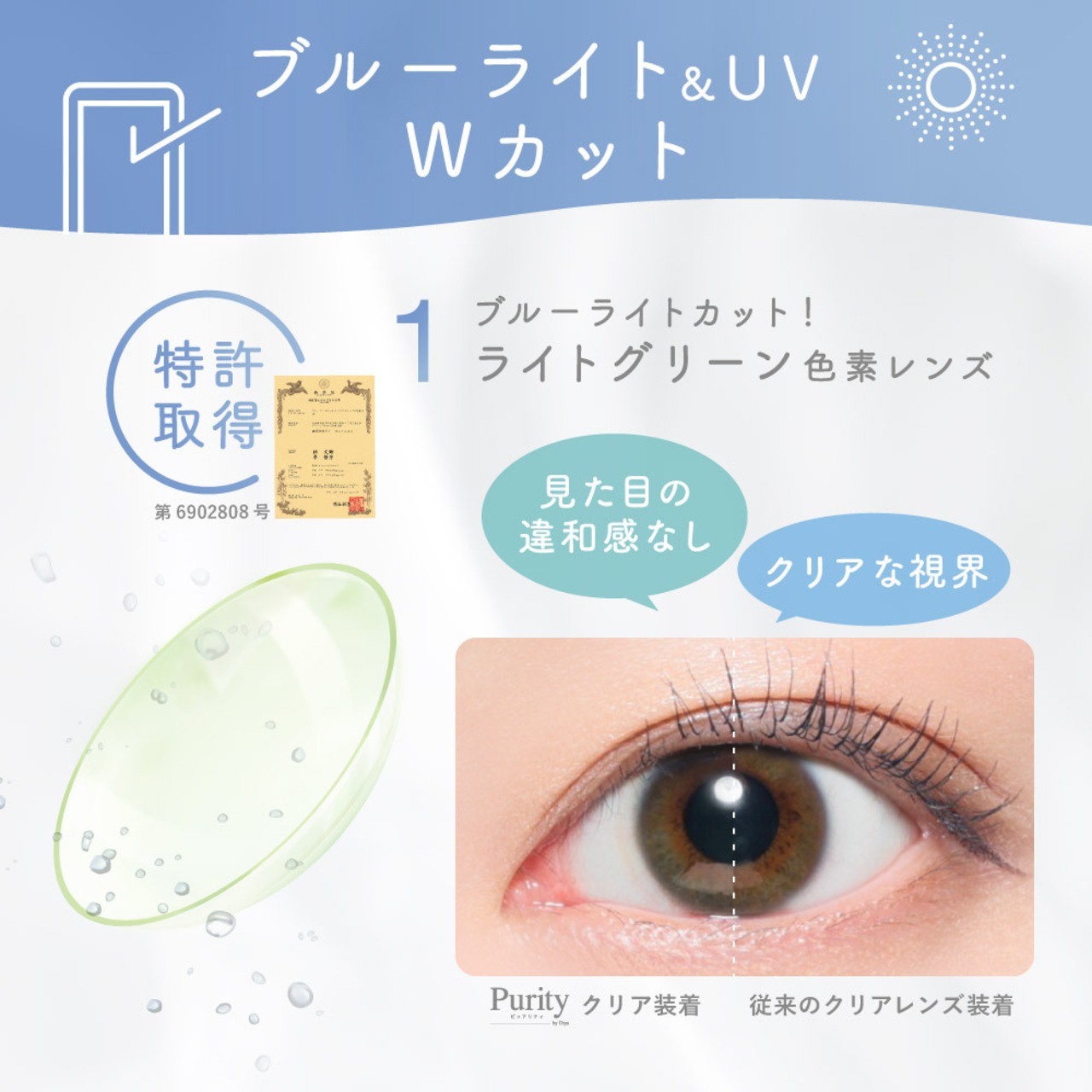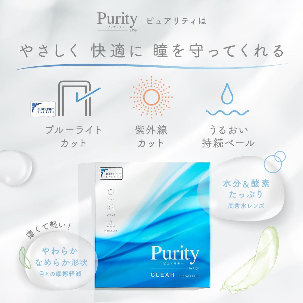 ブルーライトカット クリアコンタクト Purity by Diya ピュアリティ by ダイヤ ワンデー 1箱30枚 UV モイスチャー 高含水レンズ クリアレンズ 度あり 度なし 1日使い捨て コンタクトレンズ(purity30)