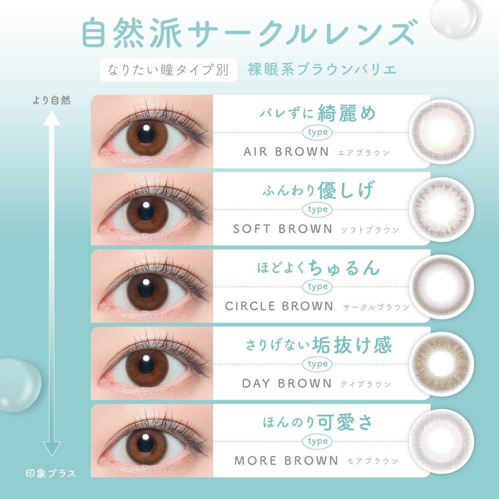 ・着色直径:MORE BROWN 13.2mm / AIR BROWN 13.0mm / CIRCLE BROWN 12.8mm / SOFT BROWN 13.0mm /DAY BROWN 13.2mm