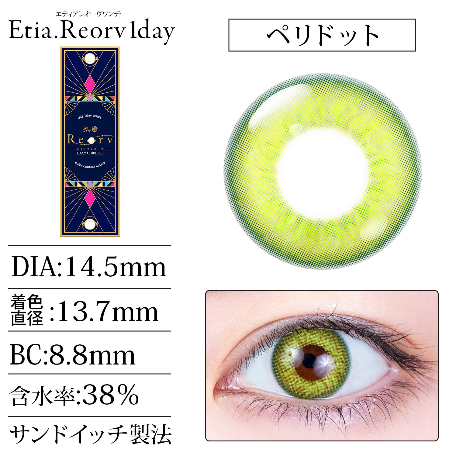 エティア レオーヴ ワンデー ペリドット 1箱10枚 度あり 度なし コスプレ カラコン Etia.Reorv 1day 1日使い捨て 高発色 4トーンワンデー