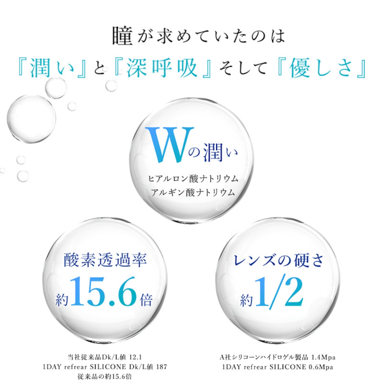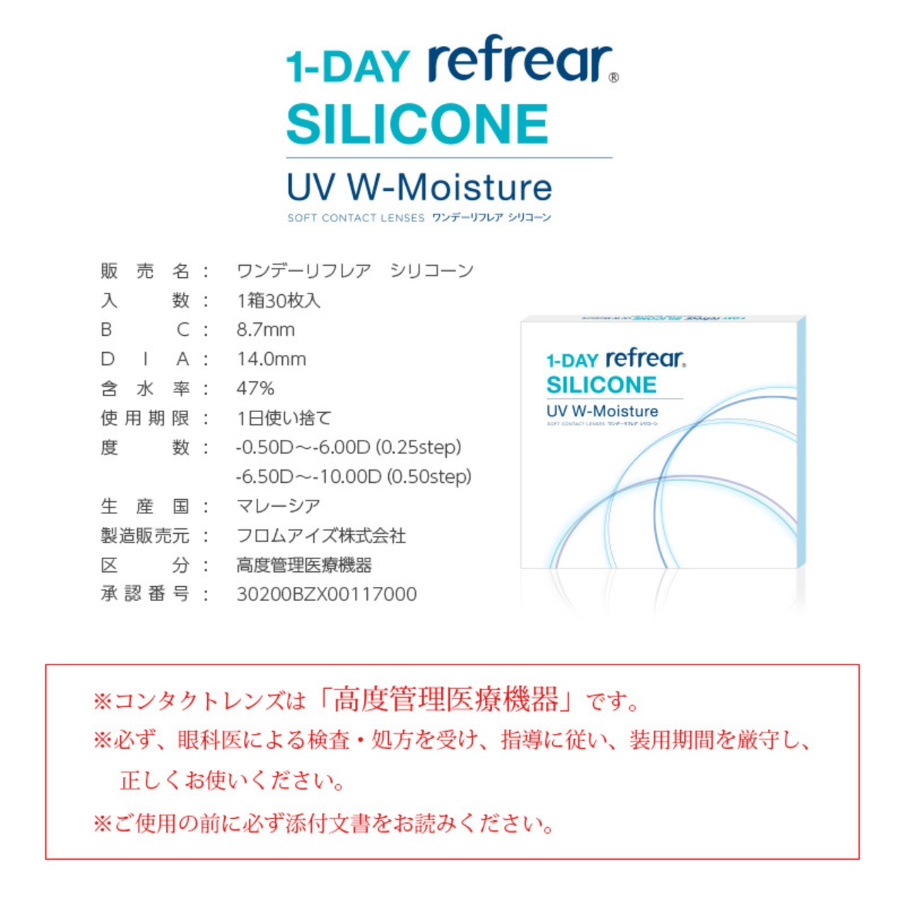 コンタクト ワンデーリフレア UV ダブルモイスチャー 1箱30枚 シリコーンハイドロゲル 素材 1day 1日使い捨て クリア ソフトコンタクトレンズ シリコン 1-DAY Refrear UV W-Moistuer