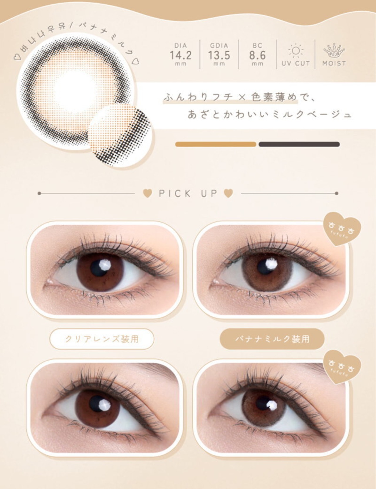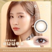 カラコン fufufu マンスリー / バナナミルク 1箱2枚 UV モイスト ちゅるん ナチュラル 裸眼風 14.2mm グレー 透明感 色素薄い 裸眼 カラー コンタクト