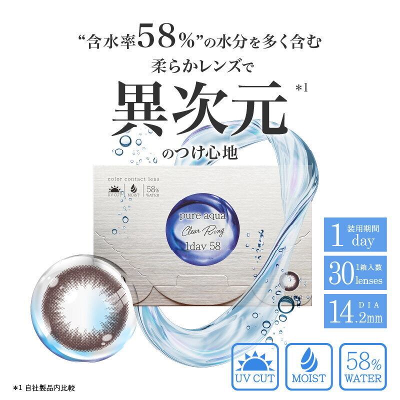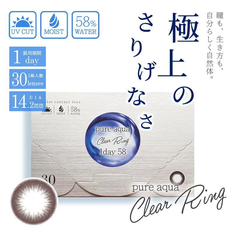 カラコン ピュアアクア クリアリングワンデー by ZERU. (ブラウンカラー) 高含水58% UV モイスト 1箱30枚 1日使い捨て Pureaqua ClearRing1day58 ゼル カラーコンタクト (pa1d-clearring)